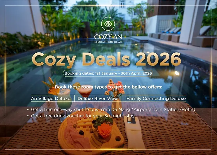 Hoi An Antik Kenti, konaklamadan 1 km mesafede, Phun Hung Tarihi Evi 1,1 km uzaklıkta yer almaktadır. Otel Cam Nam Bridge'ın hemen yanında, Da Nang Uluslararasi havalimanı ise 30 kilometre mesafededir. Cozy An Boutique Hotel Hoian, Japon Kapalı Köprüsü'a kısa bir sürüş mesafesindedir. Yakınındaki TM Camel from Nha Trang to Hue otobüs durağı 400 metre uzaklıktadır.